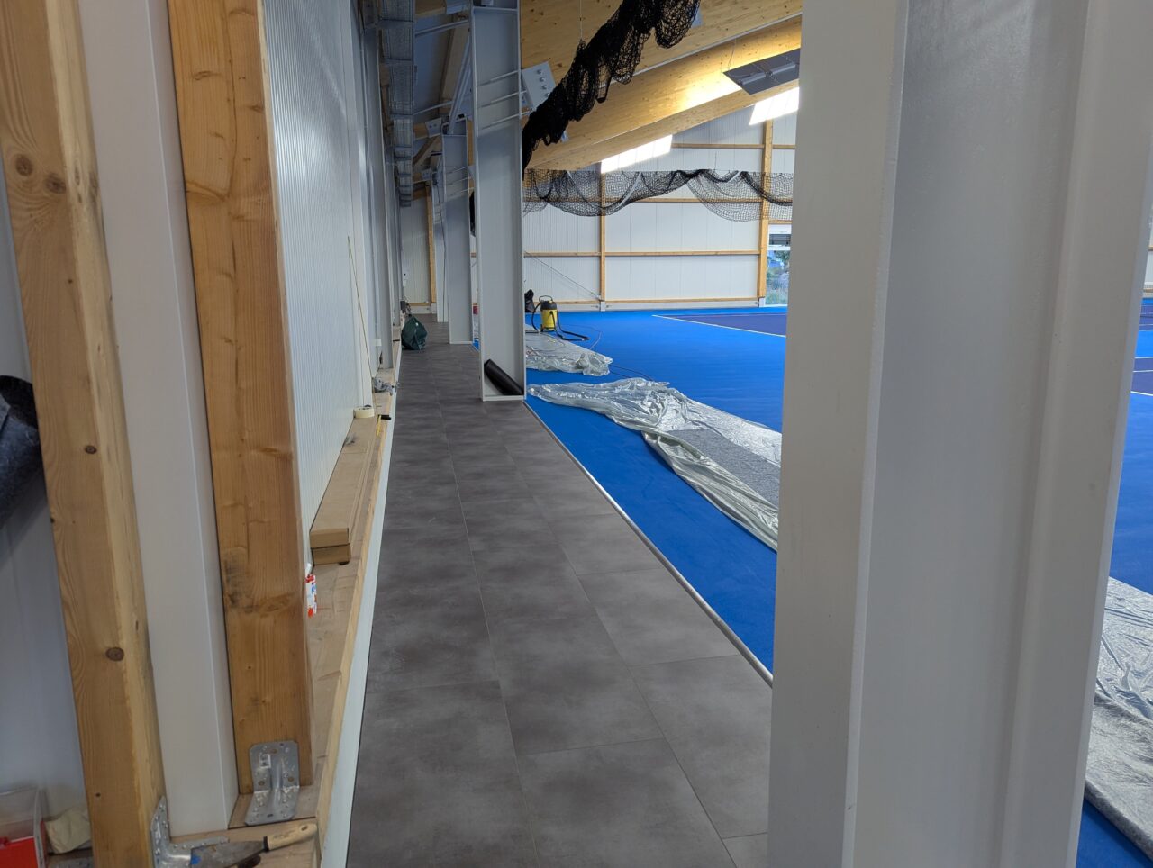 Damit ist zugleich der mögliche Eröffnungs- und Spielbeginntermin einen riesigen Schritt näher gerückt. In den nächsten Tagen und Wochen erwarten uns nun Test, z.B. unserer Gebäudeautomatisation, unseres Buchungs- und Zutrittssystems, der Lichtsteuerung, Heizung usw. Und natürlich soll es nicht nur drinnen sondern auch um die Halle herum schön werden. Geplant sind Abstellmöglichkeiten für Fahrräder, ein sicherer und barrierefreier Zugang zu unserer Halle und auch das Grüne soll nicht zu kurz kommen. Kümmern müssen wir uns auch um die Entwässerung der riesigen Dachfläche und natürlich muss alles dokumentiert und bauseitig abgenommen werden. Ein paar Schritte sind es also noch bis zum Ziel.